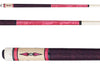 Sleeve Pink-stained figured maple cue with sim. Ebony framed Pink and Pearl inlays