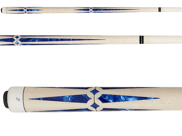 The J. Pechauer JP15-T features a no-stain figured maple cue with blue pearl diamond inlays and floating points throughout. This cue is a no-wrap design. The implex-speed joint and Pechauer Jade Medium tip contribute to a smooth and powerful hit for an enhanced gameplay experience. Finished off with a tasteful engraved JP logo on the butt plate and a new piloted joint for effortless switching between Pro Series and JP Series shafts.