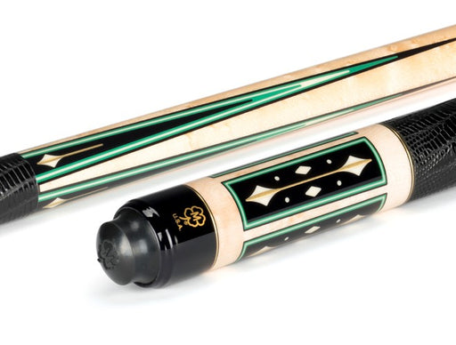 The McDermott G1502 is constructed using a Birdseye Maple forearm and sleeve. Throughout this cue are black urethane & brass points with green, bone, green & black veneers. The standard wrap is the Lizard-embossed leather wrap. Coming standard is the i-2 low deflection performance shaft and a McDermott quick release joint.