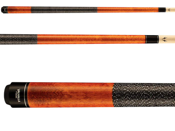 The Valhalla VA119 is built with Hard Rock Maple and features a Autumn Staindesign. The VA119 has a Premium Leather tip and High Impact Resin ferrule and features a black with white spec Irish linen wrap design. All Valhalla cues come with a LIFETIME WARRANTY against manufacturing defects, including warpage.