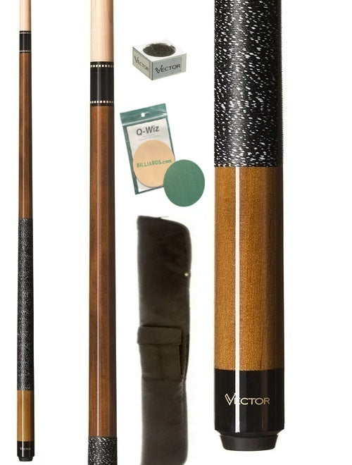 The Vector Junior Starter Cue Kit has everything your junior player needs to get started! This kit includes the Vector 48" Brown two-piece cue, a high-quality cue with an Irish linen wrap. It features a brown stained maple forearm and sleeve and comes with a Vector soft case, Vector Cube Scuffer, and the handy Q-wiz for shaft maintenance. This comprehensive package is perfect for those juniors looking to start with top-notch equipment at a great value!