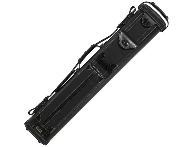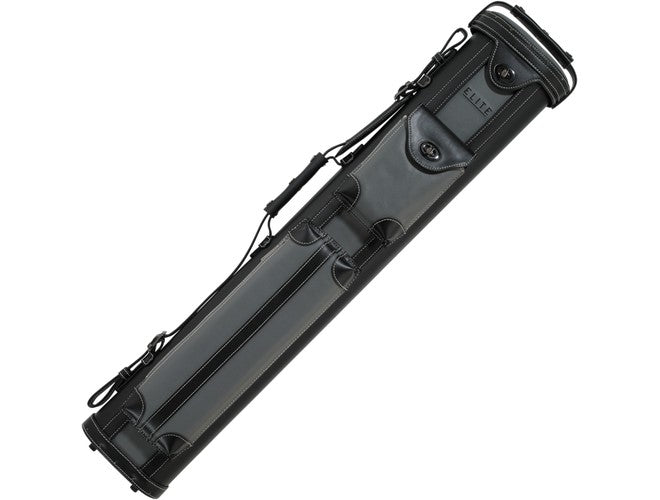 The Elite Vintage case is available in Chestnut/Cream and Black. This oval leather case holds three butts and seven shafts. The pocket is 14 inches long & comes with a shoulder strap. This case can fit up to a 31" shaft.