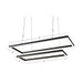 The 54" LED Double Rectangular Game Table Light Fixture combines contemporary design with practical versatility. Hung by transparent-coated wires, it produces an elegant floating appearance that elevates any room. Its dual-rectangle LED layout allows for customizable installation—align both rectangles evenly for a streamlined look or offset them to add dynamic visual appeal. Equipped with a remote control that includes dimming and timer capabilities, this modern lighting solution is perfect for illuminating billiards tables, poker tables, or dining spaces.