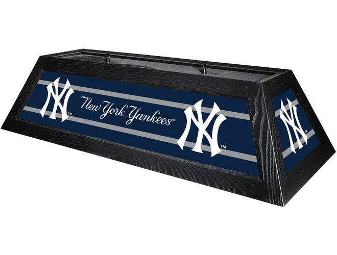The MLB Officially Licensed 42" wood framed Billiard light is here! The light is built to last with a bright backlit design that is digitally printed on a shatter resistant acrylic panel. The solid black hardwood frame will compliment your pool table as well as illuminate it with up to 400w of light for the playing surface. Included is everything to hardwire this beauty above your pool table. Select teams are currently available. These are made to order and the approximate lead time is between 10-15 business days. Ships via UPS.