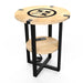 Elevate your space with this NFL Licensed Laser Etched round side table. Its modern design effortlessly complements any decor, while its 2-tier shelf offers both functionality and style. Charge up to 4 devices simultaneously and keep small items like TV remotes organized in one place. For NFL enthusiasts and furniture connoisseurs alike, this side table is a must-have for any game room or fan-cave.