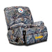 Experience the Big Game in unparalleled comfort with this officially licensed NFL GM Recliner. Upholstered in colorful microfiber, it showcases an embroidered team logo on both the headrest and ottoman, adding a touch of authentic fan spirit to your space. Crafted with a robust kiln-dried hardwood and cross-banded plywood frame, this rocker recliner is designed to support fans up to 6 feet tall while ensuring lasting durability and comfort.