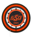 These NCAA Licensed Neon Clocks are the perfect way to show your school spirit in your game room. These 19" Neon clocks feature a new Black casing and a team specific neon ring. The clock face is lit up by a brilliant white inner neon ring. Turn this clock on and off easily with a pull chain at the bottom of the clock. Accurate quartz movement is powered by a single, AA battery (not included). These clocks are made in the USA!