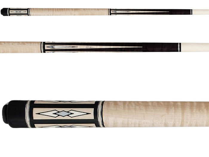 The Pechauer Pro Series P11-R features an ebony-stained maple forearm and sleeve with a no-stain figured maple wrap. Inlays include no-stain maple points with sim. Ebony framed sim. Ivory and Pearl inlays. Comes standard with a Pechauer Medium Jade tip, and 10-12" Pro Taper, with available shaft upgrades.