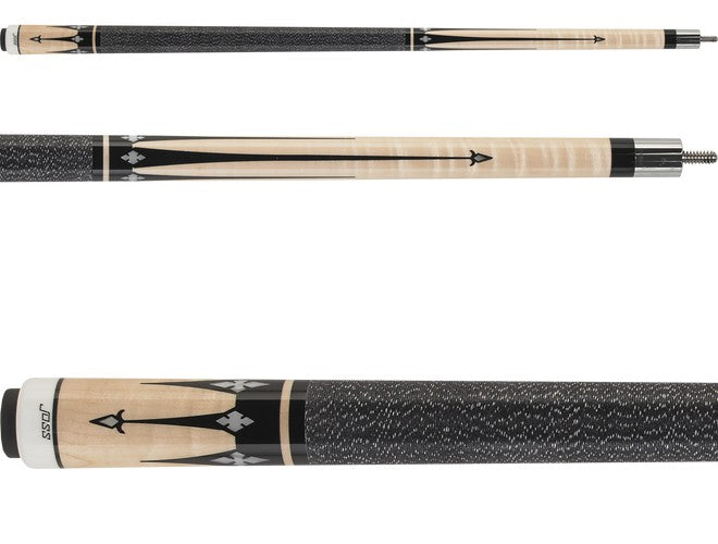 The Joss 175 is a stunning cue that is built with Birdseye Maple and features a high-low Ebony point configuration accented with Mother of Pearl diamonds. The design in the sleeve mirrors the design on the forearm and is separated by a Genuine Irish linen wrap.