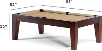 The tapered legs and clean lines of our Hudson convertible dining pool table will be a great match for modern styles in dining and game rooms. The satin walnut finish lets the beauty of the solid hardwood show through, and the double-diamond sights (inlaid with abalone and mother of pearl) bring a little sparkle. And with optional custom rail embroidery, you can truly define your new table as your own.