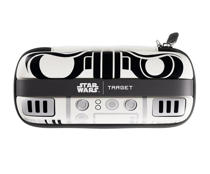March onto the oche with the Star Wars™ | Target BOA Wallet. Showcasing the Stormtrooper’s iconic white armor and bold detailing, or Darth Maul’s unmistakable red and black markings, to the beloved droid R2D2’s iconic white, blue, and silver styling. Designed to hold 6 fully assembled darts, it also features an internal tray system for 12 shafts and 15 Swiss Point tips—making it the only case in the galaxy to store Swiss Points securely. Extra compartments provide space for flights, K-Flex accessories, and tools, while a rigid shell and zip closure ensure everything stays protected on the move.