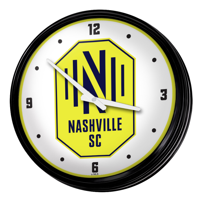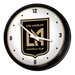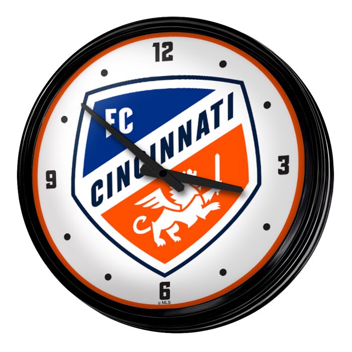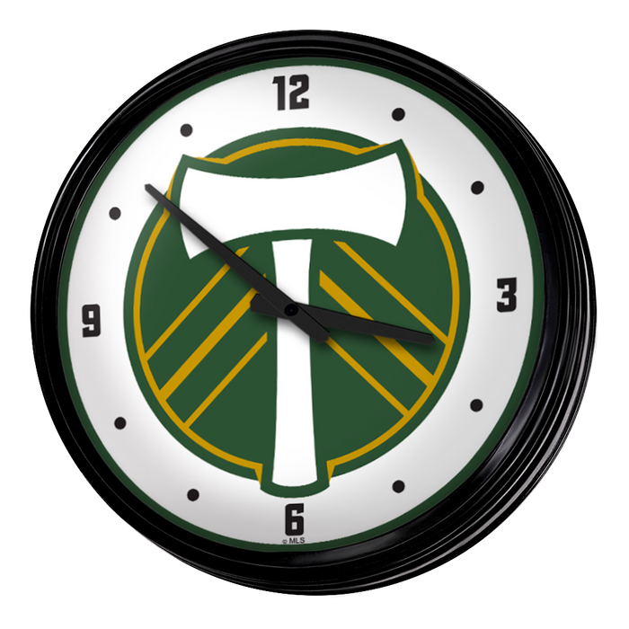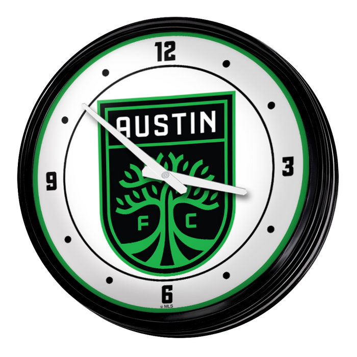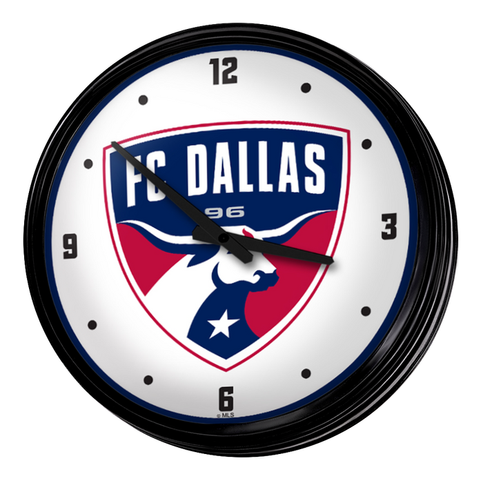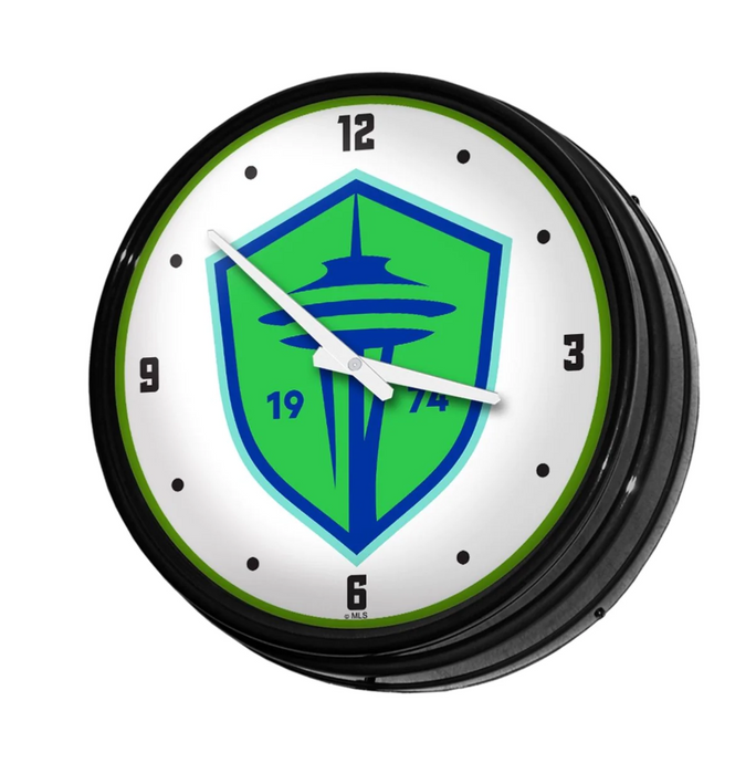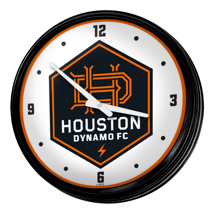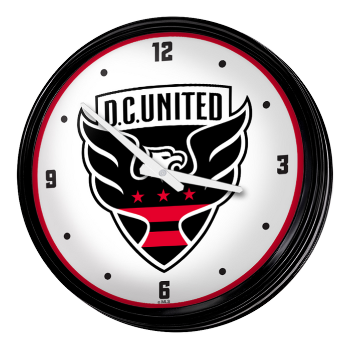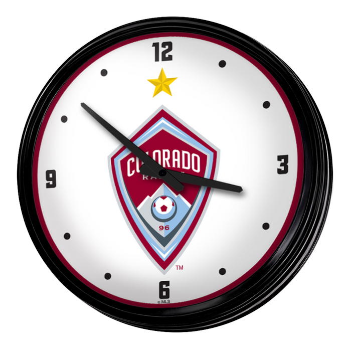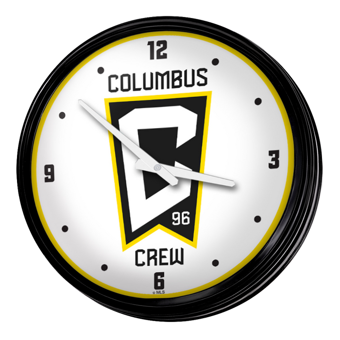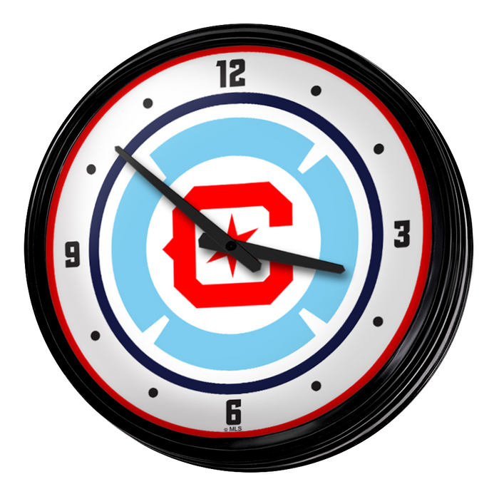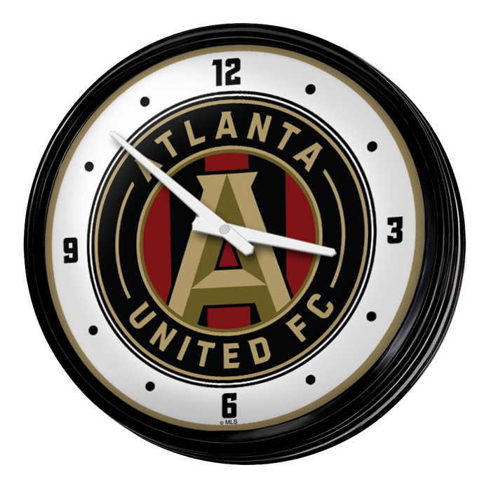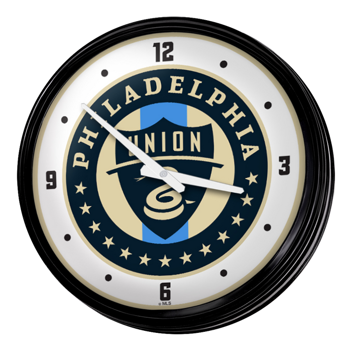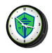 Enhance the aesthetic of any home or office space with The Fan-Brand MLS Retro Wall Clock. This injection molded clock boasts a high-resolution, high gloss digitally printed face and comes equipped with an 8-foot power cord, an on/off pull switch for the light, and LED illumination. The package includes hanging hardware and a light bulb, while proudly bearing the official license of Major League Soccer and being made in the United States.