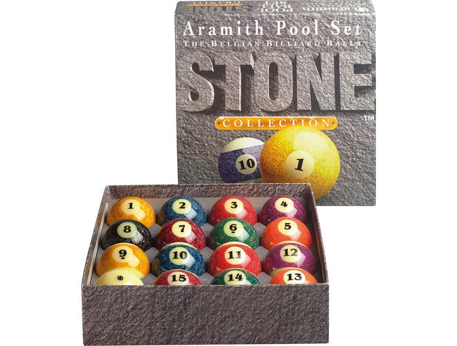 The Stone ball set by Aramith is a modern take on the traditional ball set. This ball set has a granite appearance and is sure to give your table a fresh look. This ball set is a standard size 2.25" and made of phenolic resin and made by the leader in the industry, Aramith.