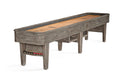 Family-friendly fun begins with this classic shuffleboard table. Featuring a 20" wide by 2.5" thick North American maple wood playfield and polymer resin surface, this table is exquisite in its playability and appearance. Available in 12- and 14-foot sizes with a contemporary espresso, driftwood or rustic dark brown finish. Features convenient storage shelves found at the center leg and accessories (including four black pucks, four red pucks, stainless abacus scorer, table brush, and Shuffleboard Wax), the Andover provides a unique visual complement to any home game room. Optional light set (set of two) sold separately.