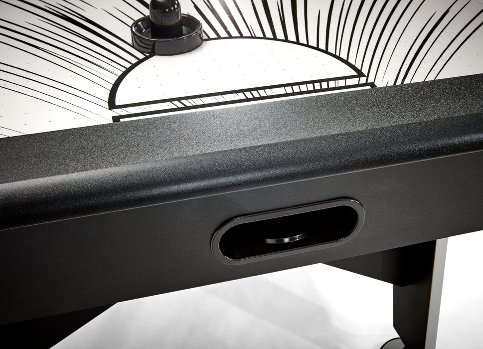 Enhance your gaming space with the luxurious Brunswick Windchill II 7' Air Hockey table. Its sleek, modern design is supported by a sturdy pedestal base and powered by a constant flow UL blower, providing endless entertainment. Each table kit comes with two mallets and four pucks. Assembly is required.