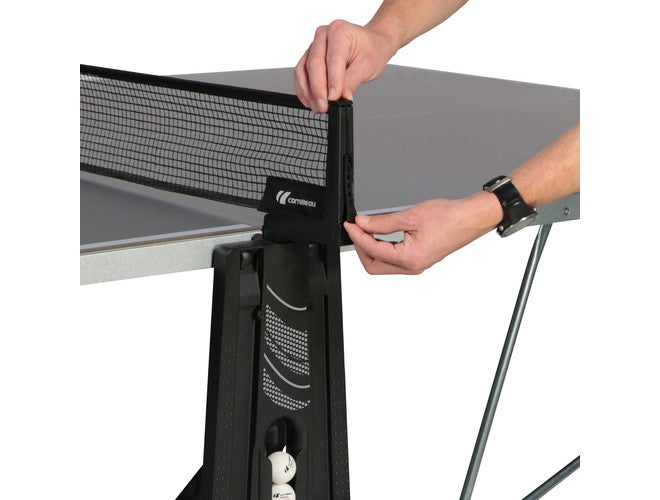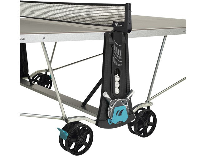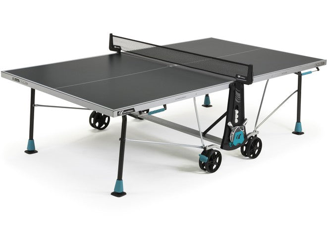 The Cornilleau 300X Outdoor Ping Pong table offers a solid core 5mm-thick resin laminate playing surface designed to take on heavy rain and snow, extreme heat and major paddle impacts. The SOFTMAT finish applied to the 300X ping pong table reduces the intensity of the sun’s rays threefold compared with an uncoated table. All the metal parts used are selected for their resistance and receive an anti-corrosion coating. More features about this table are the swivel feet, Two brakes, oversized double wheels, 16-point locking system maximum safety; both while playing and when it's in storage. Like all of Cornilleau's outdoor tables, the 300X is guaranteed for up to 10 years by the manufacturer. Ships via freight and assembly is required. Assembly instructions are available in the PDF or a Youtube video is available.