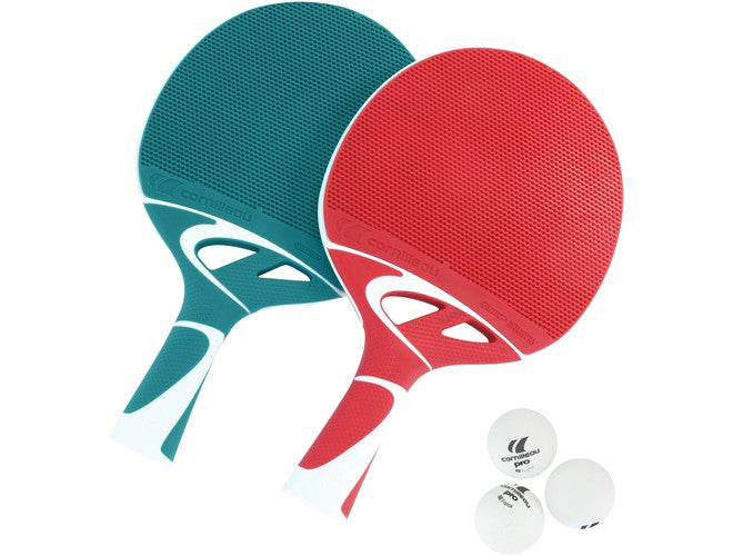 This pack Includes 2 Tacteo bats and three balls, perfect for ping pong parties with family members and friends. With bright colors and a trendy shape, this will be popular with kids and adults. Launched in 2005, the Tacteo is improving year on year to the rhythm of our innovations. Capable of withstanding all kinds of bad weather, this composite bat offers unique benefits both in terms of its resistance to shocks and outdoor conditions.
