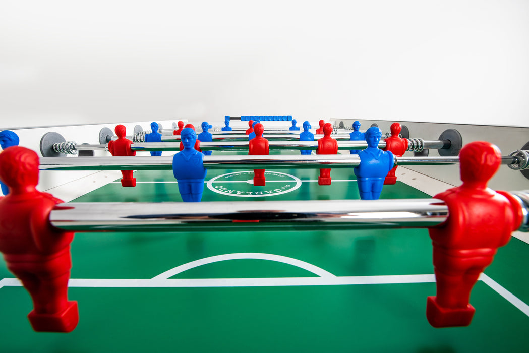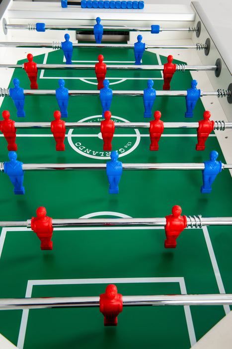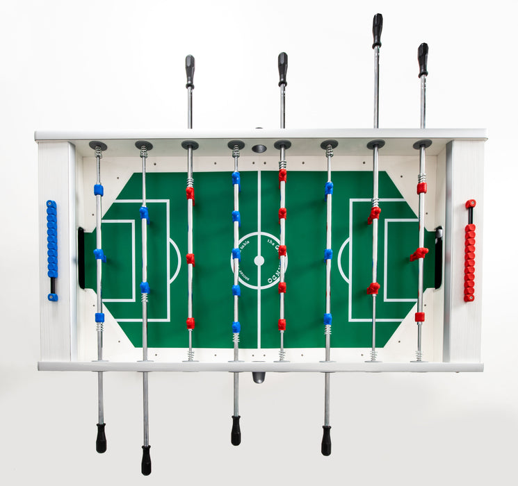 For added safety, the telescopic rods are ideal for younger players, while the unbreakable men are securely attached to the rods. The heavy-duty 4" x 4" metal legs have an anti-scratch powder-coated finish and floor levelers to ensure a stable and even playing surface. Proudly made in Italy, the Garlando G-500 foosball table also includes 10 white resin balls.