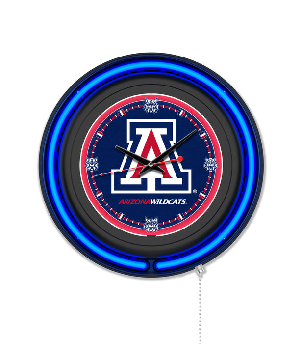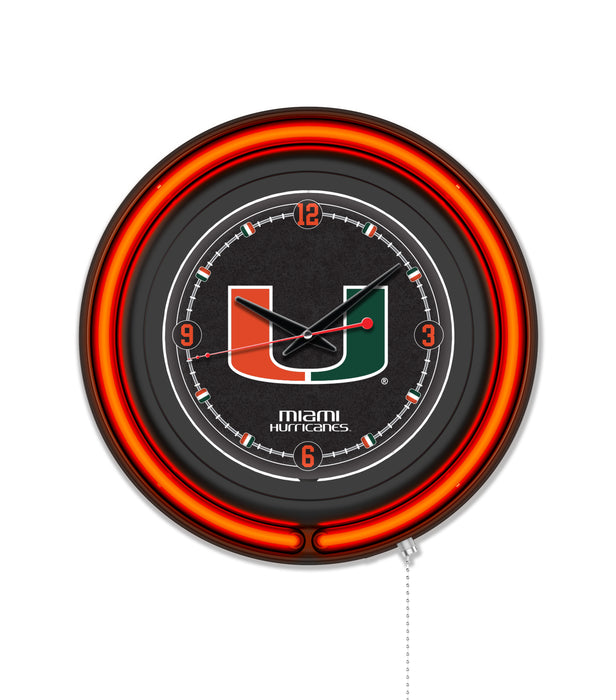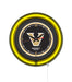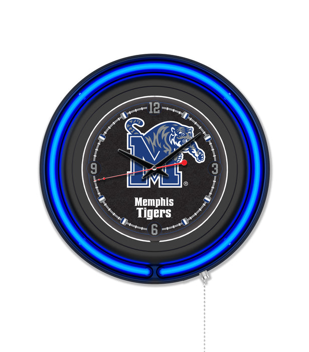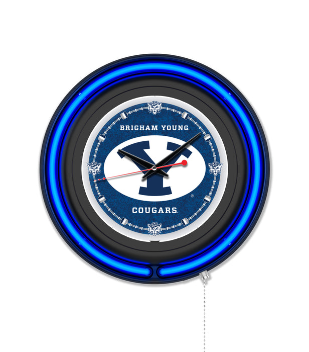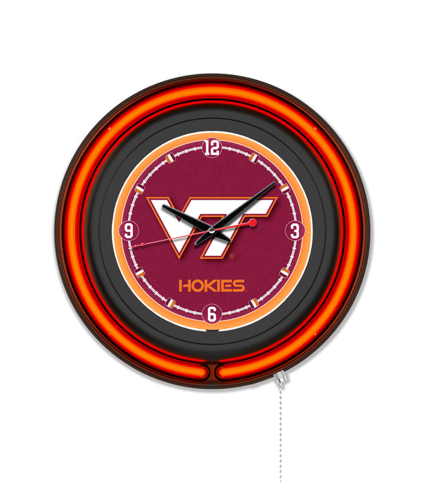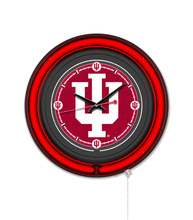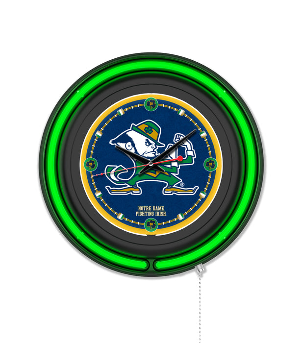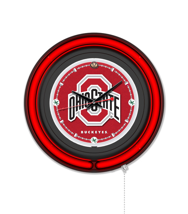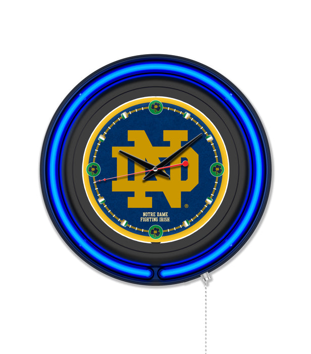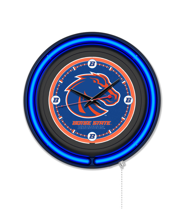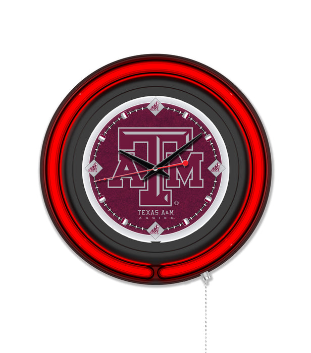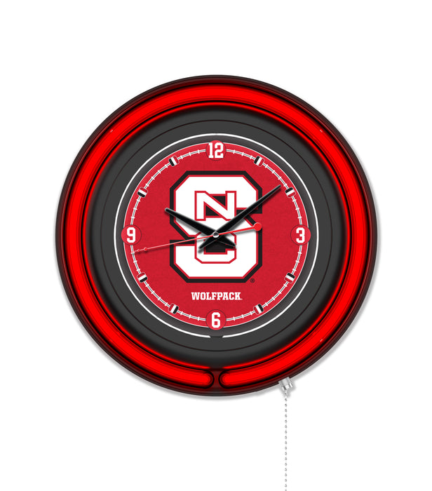 These NCAA Licensed Neon Clocks are the perfect way to show your school spirit in your game room. These 15" Neon clocks feature a new Black casing and a team specific neon ring. The clock face is lit up by a brilliant white inner neon ring. Turn this clock on and off easily with a pull chain at the bottom of the clock. Accurate quartz movement is powered by a single, AA battery (not included). These clocks are made in the USA!