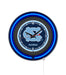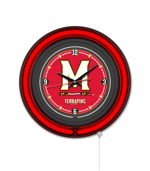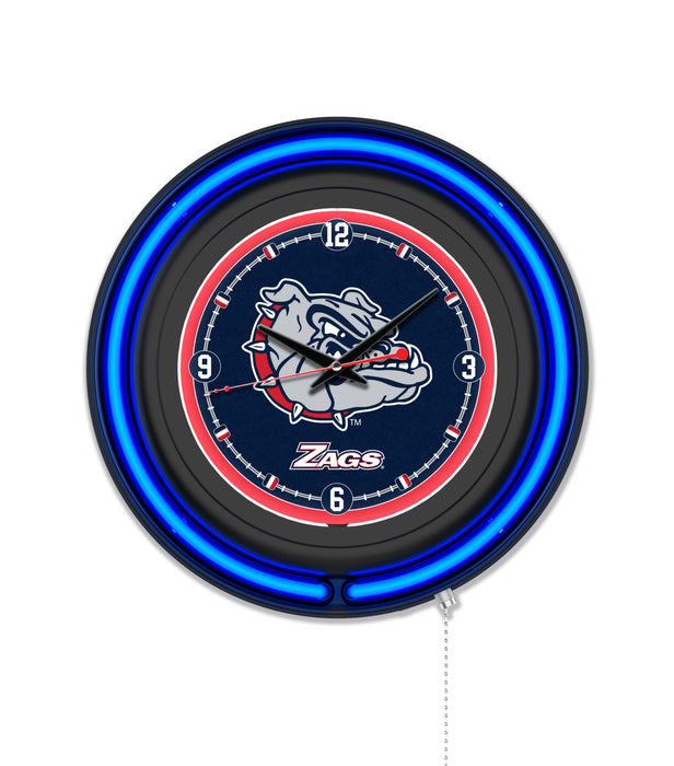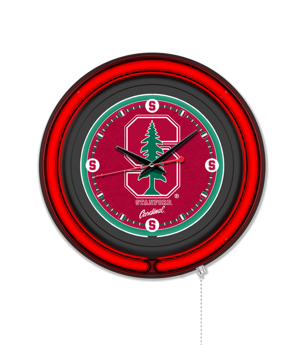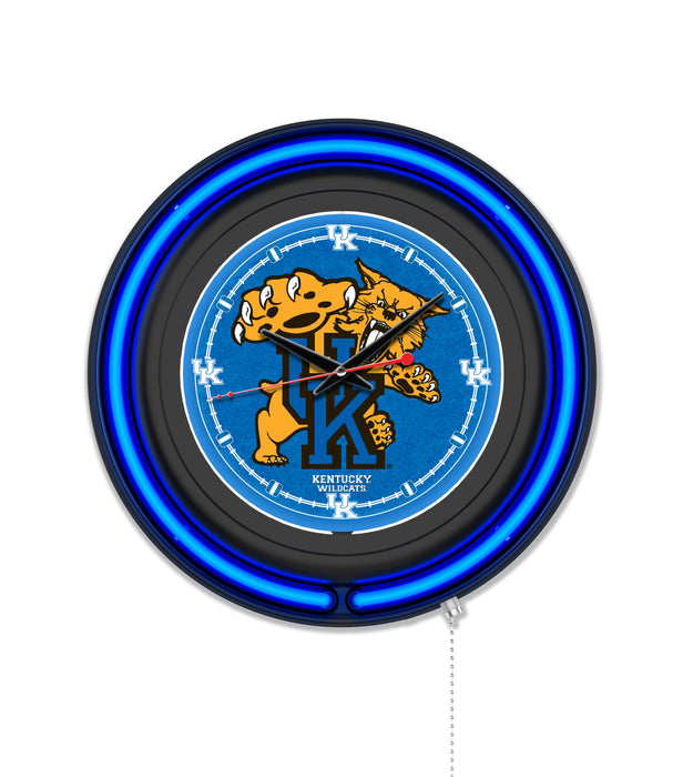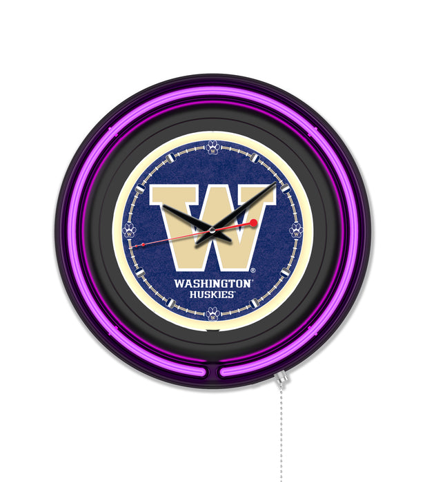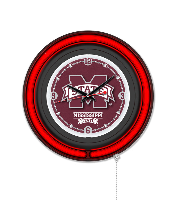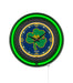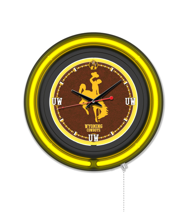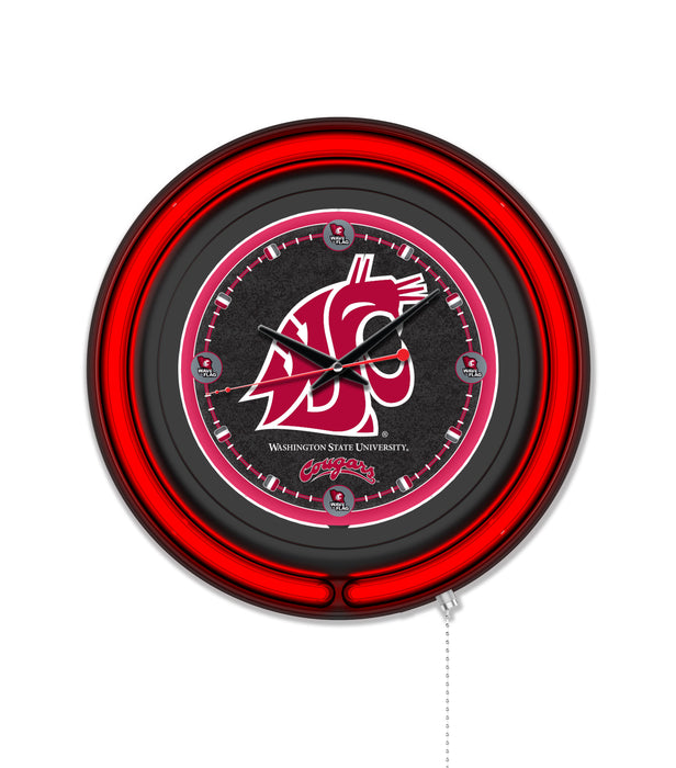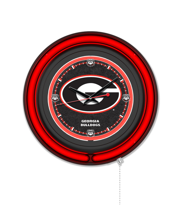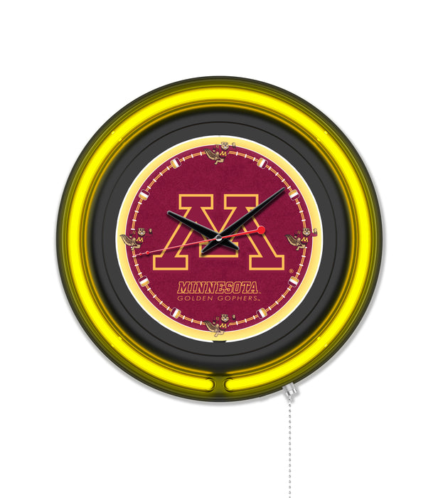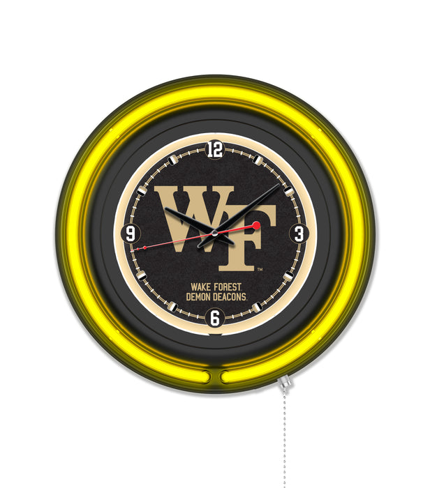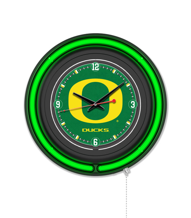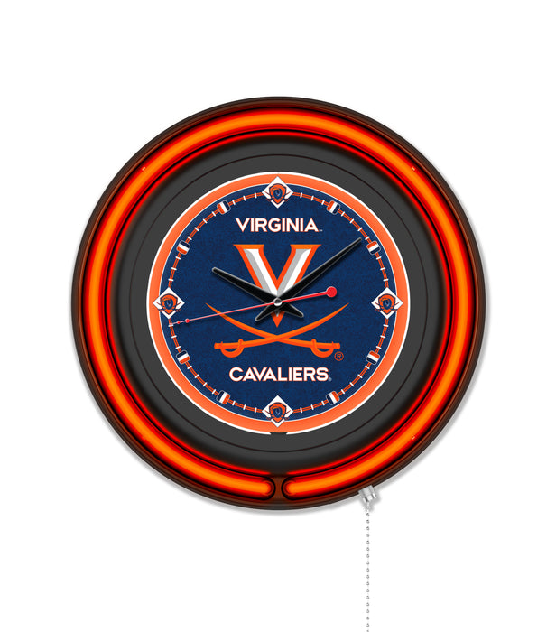 These NCAA Licensed Neon Clocks are the perfect way to show your school spirit in your game room. These 15" Neon clocks feature a new Black casing and a team specific neon ring. The clock face is lit up by a brilliant white inner neon ring. Turn this clock on and off easily with a pull chain at the bottom of the clock. Accurate quartz movement is powered by a single, AA battery (not included). These clocks are made in the USA!