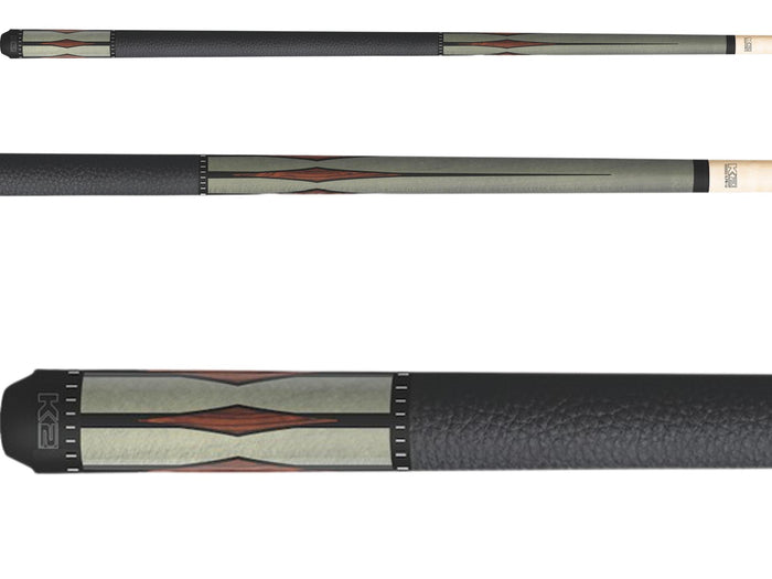The K2 KL192 features a matte gray finished forearm and sleeve and sports floating Cocobolo and black point designs. The wrap finishes this cue off nicely using black Leather Lore. This cue comes with a 11.75mm low deflection shaft and a Tiger Everest tip.