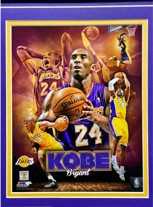Introducing, for the very first time ever, this incredible framed collage that features actual confetti from the final game of Kobe's career from the Lakers vs. Utah Jazz game on April 13, 2016. If you can remember, Kobe scored 60 points that night against the Jazz becoming the oldest player in NBA history to score 60 points in a game. Check out the circular purple confetti that are designed like basketballs that have "24" in the middle. These confetti pieces, as well as the yellow rectangular ones, dropped at the Staples Center after the Jazz game in celebration of his retirement from Basketball. If you look at the photos on this listing you will see we found some news articles we took a screenshot of showing the confetti going up in the Staples center and also the aftermath of the confetti on the Lakers court!