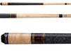 The LUX65, Lucasi's November cue of the month for 2023, features a Natural Birdseye Maple forearm and sleeve with custom grey poly, Bocote & Cocobolo wood rings above and below the wrap.
