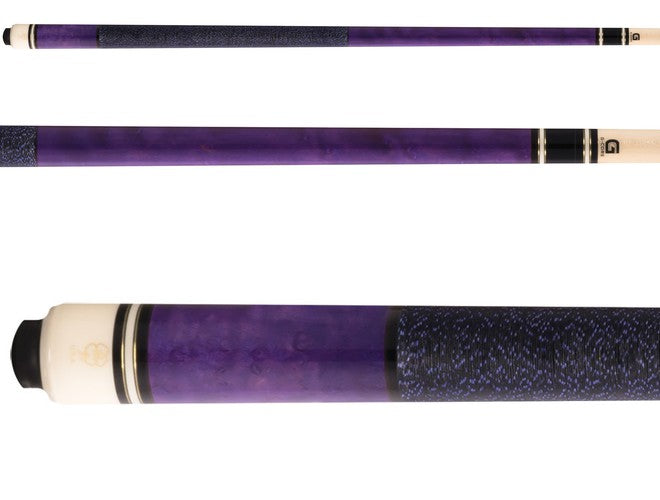 The G241 by McDermott is built with Birdseye Maple and features McDermott's new Purple stain. The wrap accents perfectly using black with purple spec Irish linen. From top to bottom three sets of brass, black & bone urethane rings adorn this cue. The G-Core shaft comes standard with the G241 which is equipped with a Navigator Black tip. All McDermott cues come with a lifetime warranty that includes warpage.