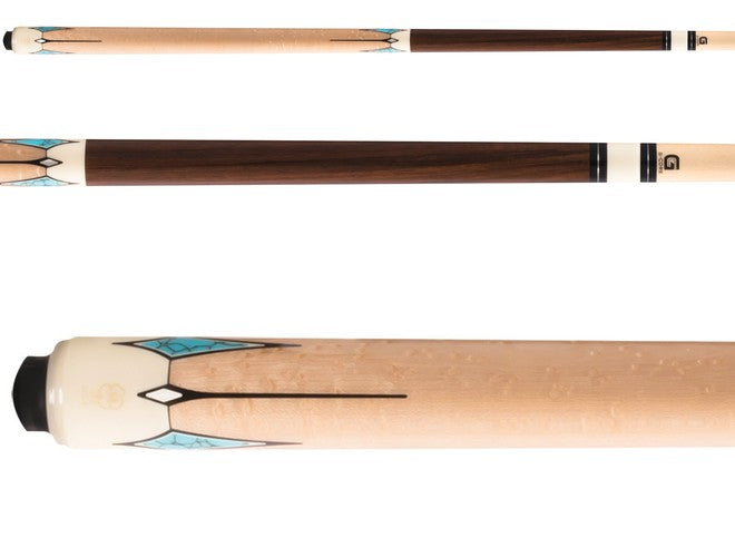 Manufactured in Menomonee Falls, WI, McDermott cues are known for quality construction, exotic woods, intricate inlays and limitless custom options. The G411 is a stunning no wrap cue that uses the sharp contrast of Birdseye Maple and Rosewood. Throughout the cue there are 12 Pewter, Turquoise, Recon Ivory & Recon Ebony handle/butt plate inlays.