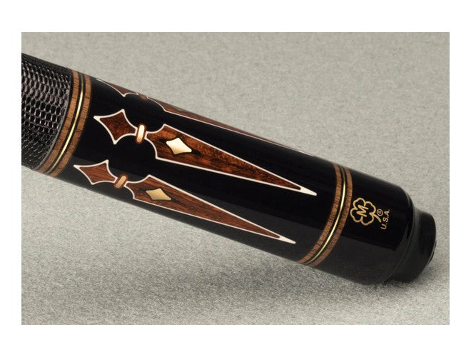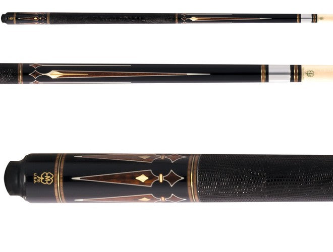 The McDermott G901 features a striking design with Ebony sleeves and forearms, adorned with inlays of Snakewood Recon Ivory and brass. The cue boasts 6 long and 3 short inlays on the sleeve, perfectly matched by 6 additional inlays on the butt. Standard features include a Lizard embossed leather wrap, McDermott Quick release joint pin, and the I-2 shaft, making this a cue that is both visually stunning and high performing.