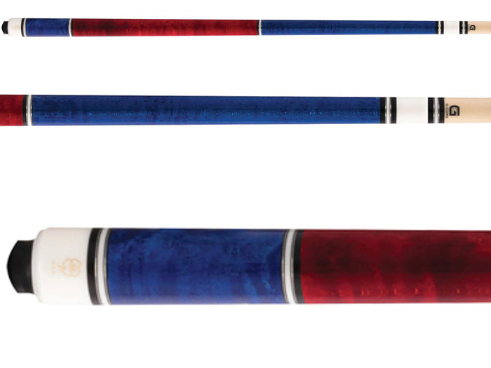 Elevate your team spirit with the latest Team Spirit cues from McDermott! Discover a range of popular team colors. The Buffalo football team's color scheme features a Pacific Blue stained forearm and sleeve, complimented by a no-wrap Colorado red stained handle. Silver accent rings provide the perfect finishing touch to this cue. And as a bonus, you'll receive the G-Core shaft at no additional cost. Proudly crafted by McDermott in the U.S.A. and backed by a lifetime warranty against cue warpage. Please allow 8-10 weeks for production.
