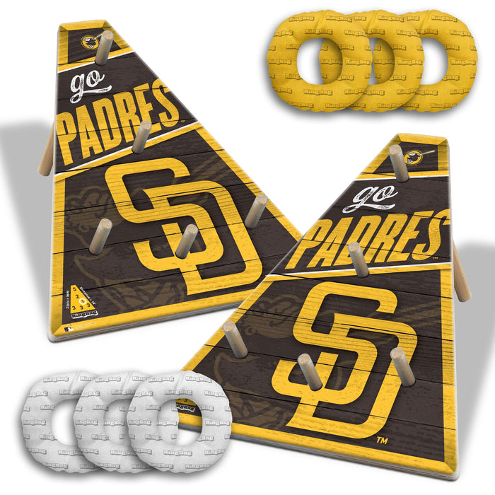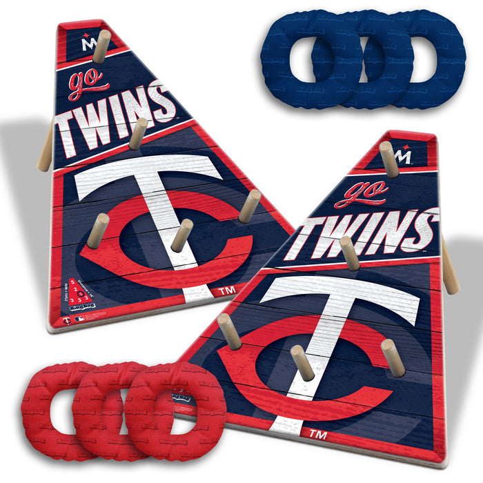 With the Officially Licensed MLB RingBag, It’s a “ringer” of a good time with this classic aim game you can play anywhere! Made of durable fabric and filled with resin beads, RingBags are fun to hold and safe to toss with just enough weight to land with impact. Plus, players of all ages can represent their favorite MLB team with Official Logo and team colors! The RingBags are all-weather, team-colored fabric filled with resin beads. Includes 2 game boards with wood pegs, 6 team-colored RingBags, bag carrying case. Designed, machined and assembled in the USA. The perfect lawn game for your summer fun!
