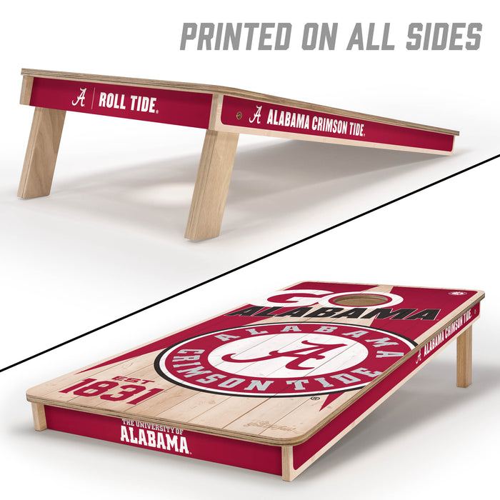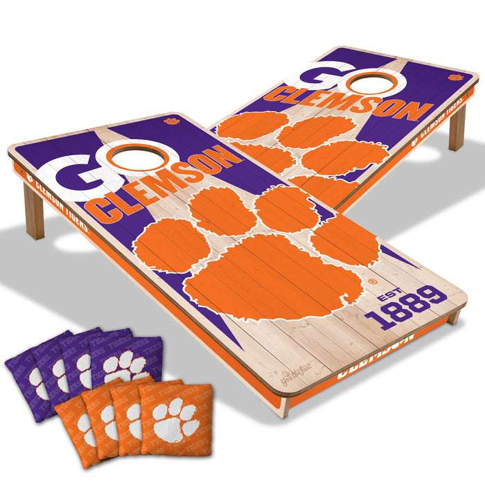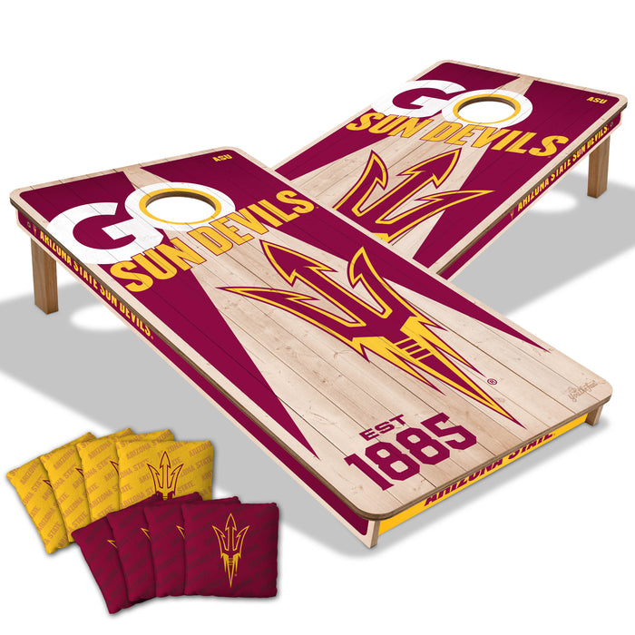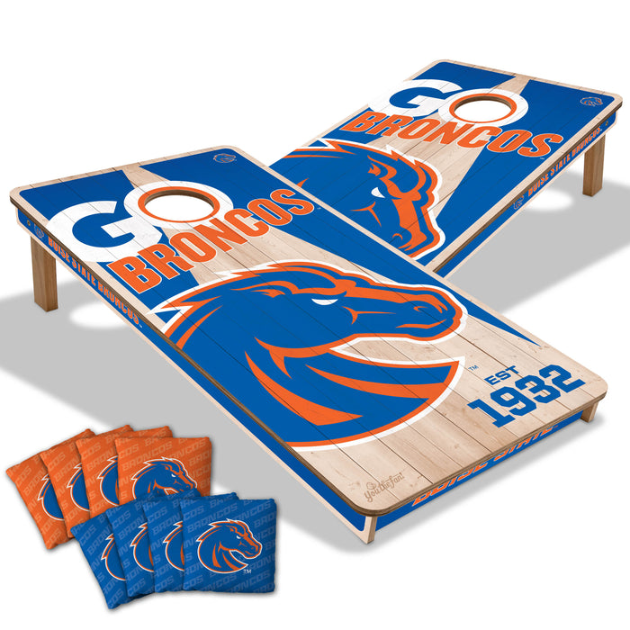 Elevate your tailgating experience with these NCAALicensed Cornhole Boards. Designed to impress with sturdy construction and high-quality performance, these boards feature vivid team graphics on a 15mm thick surface. Perfect for game-day gatherings, each set includes 2 boards and 8 team-colored bags in 2 different colors for friendly competition. Made in the USA with UV printing, these boards are officially licensed and durable on all sides. Don't wait - grab your friends and let the fun begin!