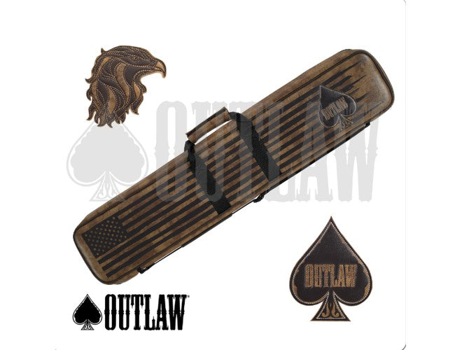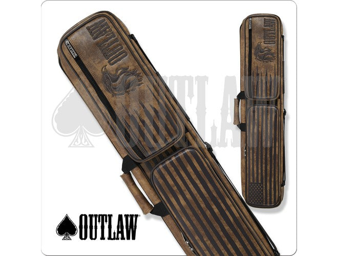 The Outlaw America 4x8 Soft case is a tan case with the USA Flag proudly displayed on the front and back with the Outlaw logo on one side and the symbolic American Eagle on the other. This case is a butterfly access design and will fit 4 butt & 8 shafts.
