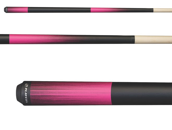 The Players C-703 is a no-wrap cue that features a Matte Black handle. The forearm and sleeve sport Metallic Pink combined with Matte Black. This cue comes standard with a 12.75mm shaft with a Le Pro tip. The C series by Players is one of the most popular in the category of under $100. Great value and even better Quality! Lifetime Warranty that includes warpage.