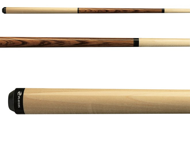 The Players JB9 Jump/Break cue is a sleek and simple design using natural Maple in the sleeve and handle. The forearm features beautiful Zebrawood. The shaft is made from 100% North American Grade A Hard Rock Maple and sports a 14mm Super-hard Bakelite tip for maximum power and control. Players cues features a Lifetime Guarantee even against warpage.