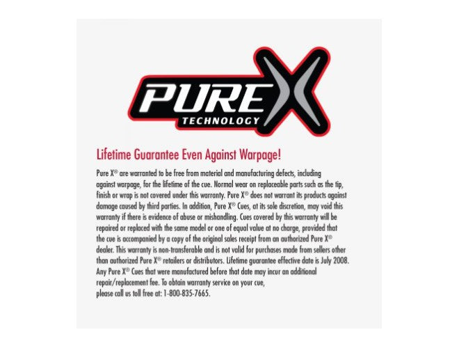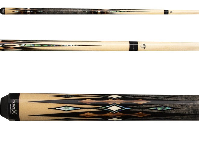 The HXTE12 by PureX is a modern design that features a Birdseye Maple forearm and sleeve. The handle is gray stained Birdseye Maple, utilizing a wrapless design. The HXTE12 comes with the HXT Low Deflection Shaft and a Kamui black soft tip which reduces cue ball deflection through a high-tech ferrule with a special lightweight polymer core. PureX cues come with a lifetime warranty.