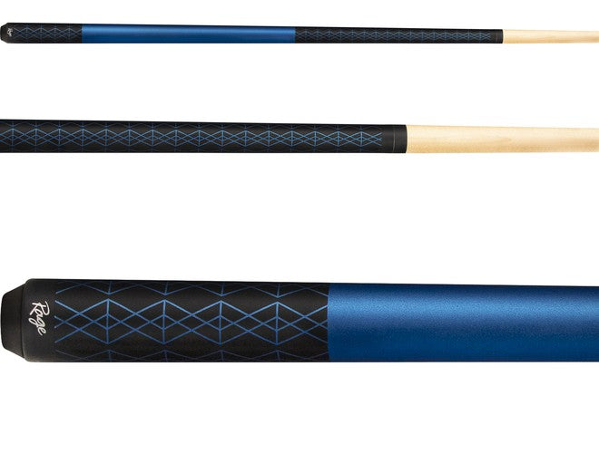 The RG112 is a bold and modern design that features a Matt black forearm and sleeve with blue diamond designs. The handle is a solid blue. This cue is built with 100% Hard Rock Maple and has a high quality leather tip.