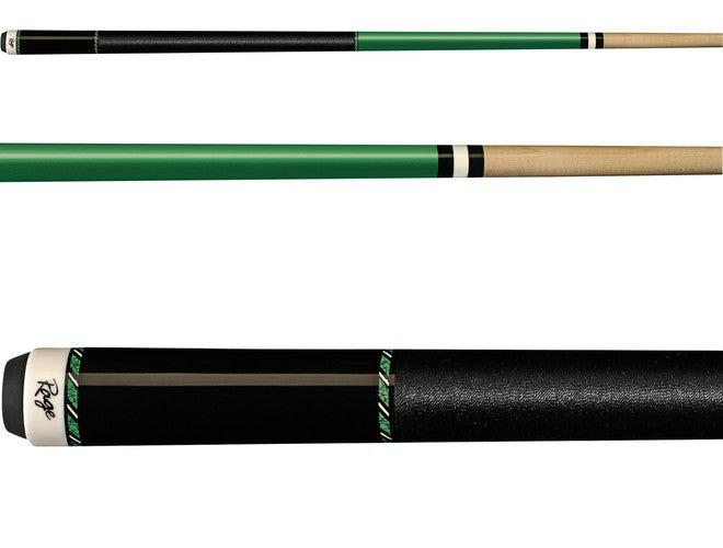 The Rage RGC7 cue features 100% Hard Rock Maple construction with a green stained forearm with green recon graphic rings, Implex joint and solid black pressed nylon wrap. Rage cues are made for players of all ages and skill levels who want great quality, but don’t want to spend an arm and a leg on a cue and don’t want to settle for a style they don’t like.
