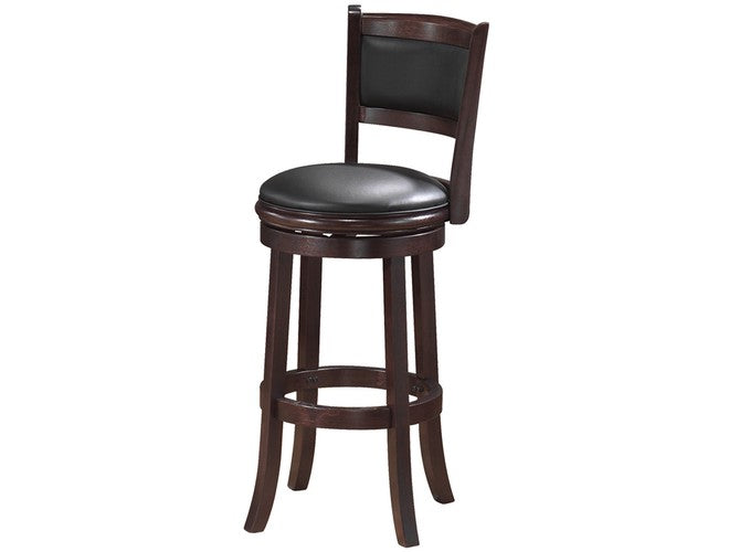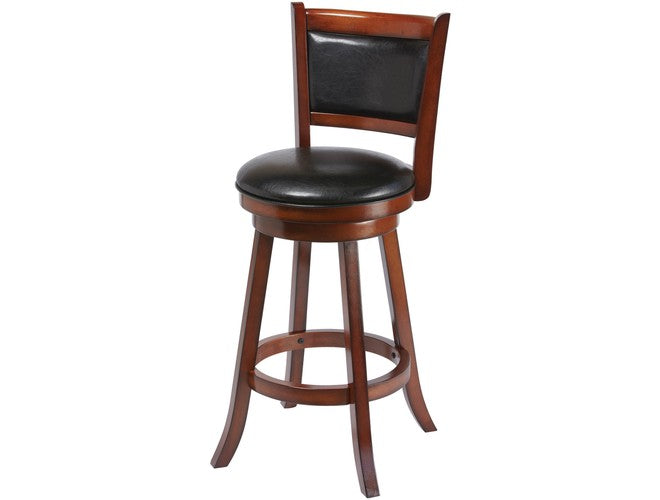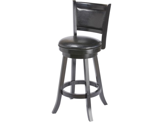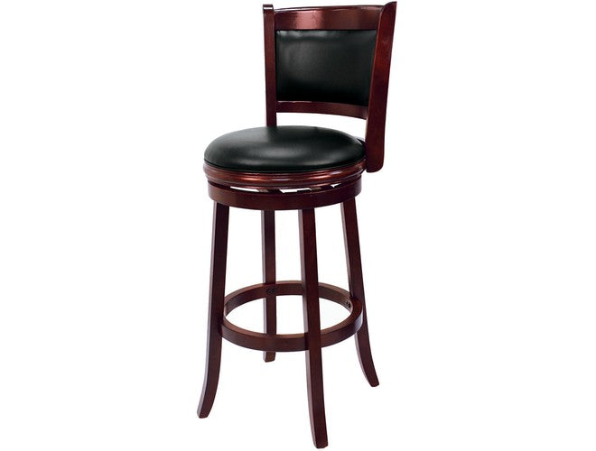 The Backed Bar Stool By Ram Game Room is great addition to any game room or bar area. These bar stools are made of solid wood and have a vinyl seat pad and back. These are available in four different finishes Black, Cappuccino, Chestnut and English Tudor.