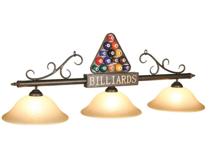 The Ram Gameroom Billiards light is a classic design that features a rack of balls above a Billiards sign. Whether for a home or commercial use this is sure to attract attention. The bar is Bronze which is a perfect match for the Amber shades.