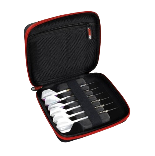 Firestone Grande case is single zipped with a maximum capacity design. It has multiple pockets and holds several fully assembled darts. Also has plenty of pockets for extra shafts and flights. The Grande 2 holds 2 sets of darts plus extra shafts and flights. The Grande 4 holds 4 sets of darts plus extra shafts and flights.