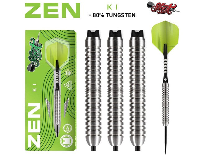 Precision made at the Shot Darts factory in New Zealand, Zen barrels feature classic ring grips and push points that will suit most players and throwing styles. Ki's centre weighted 80% tungsten barrels brings perfect balance and stability to your playing. Whatever your skill level, Ki is the dart to awaken the confidence to win. This set features and tried and true mix of ring and scallop grips, and a tapered barrel nose for great grouping. Grip and reference points running along the entire length of the barrel will suit many playing styles.