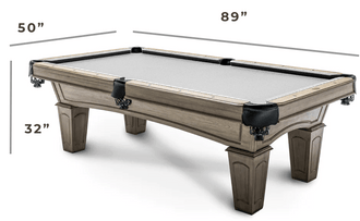 Constructed from the 100% hardwoods, the Elmhurst includes a 3-piece 1" thick slate table bed for consistent playing surface. Available in regulation 7, 8, and 9-foot sizes, the Elmhurst caters to various preferences and space requirements, and is fully customizable, from pocket options to cloth types and colors, including custom embroidery for a unique touch.
