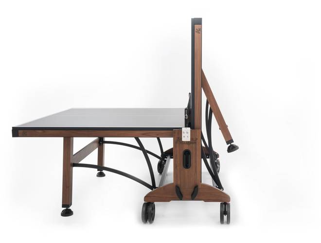 The simple and smooth folding design makes folding/unfolding a breeze. Weathering and color variation over time is natural for table tennis tables made of woods or with wood parts.