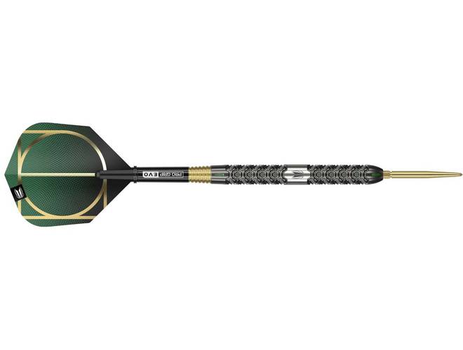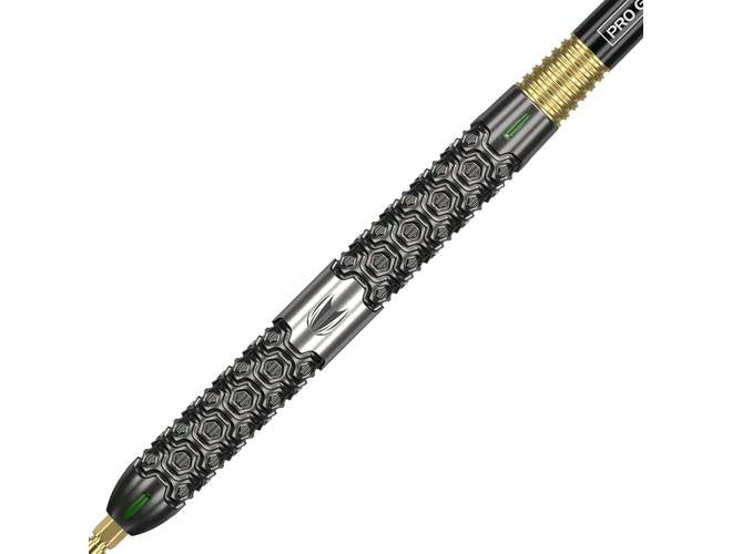 The Target Cult SP03 shows glimpses of previous Elysian edition designs with a combination of high precision milled grips, performance coatings and tiny details which elevate the dart to Target standards. The barrel contains a high precision machine milled barrel containing a number of ‘cells’ throughout which give a strong but subtle grip texture, the barrel is further aided by small flecks of color and detail running up the barrel. The black PVD performance coating overlaid on the barrel then completes the texture of this stunning piece of engineering. The dart is completed with a Gold Swiss point, Gold Pro Grip EVO and exclusive Cult Flights.