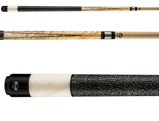 The Viking Helix HL0404 features White Premium pearl inlayed points on the forearm set in Khaki stained Birdseye Maple. The sleeve has a matching design using all White Pearl. Comes standards with the ViKORE Performance Shaft with a Tiger Everest Tip, Upgrade options are available. Viking cues are made in the USA and come with a lifetime warranty that includes warpage.