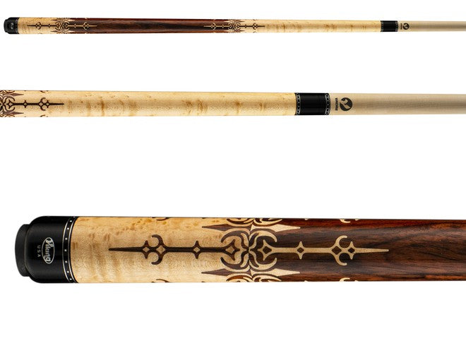 The Viking Motore MT0604 is built with Khaki stained Birdseye Maple and sports an East Indian Rosewood handle. This beauty features 50 East Indian Rosewood and Premium Birdseye inlays throughout. Comes standards with the ViKORE Performance Shaft with a Tiger Everest Tip, Upgrade options are available. Viking cues are made in the USA and come with a lifetime warranty that includes warpage.