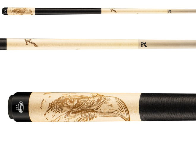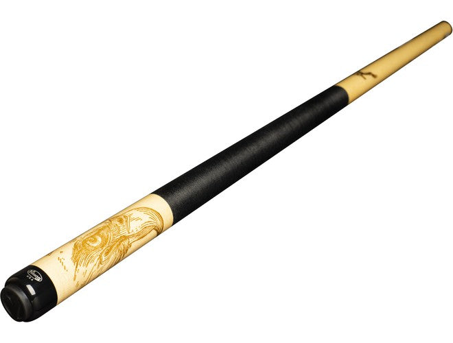 The Eagle by Viking features a Natural Stained forearm and sleeve with 3 laser engraved flying Eagles on the forearm and an engraved Eagle profile on the sleeve. The wrap is solid black Irish linen. Comes standards with the ViKore Performance Shaft. Viking cues are made in the USA and come with a lifetime warranty that includes warpage.
