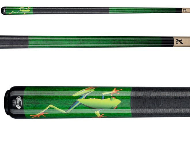 The Tree Frog cue by Viking is a great design. The cue features a green forearm and a Tree Frog graphic on the sleeve. The wrap ties this cue together nicely using black with green spec Irish linen. All Viking cues have a lifetime warranty that includes warpage.